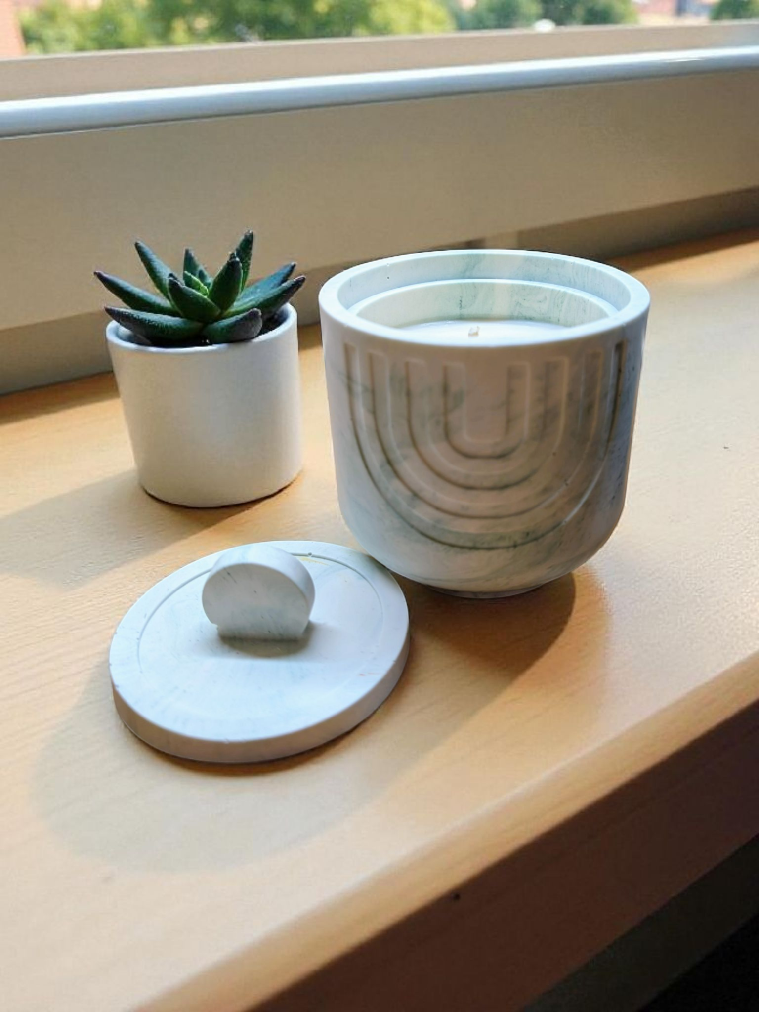 Chaque création est présentée dans un contenant décoratif, conçu pour être réutilisé une fois la bougie consumée.