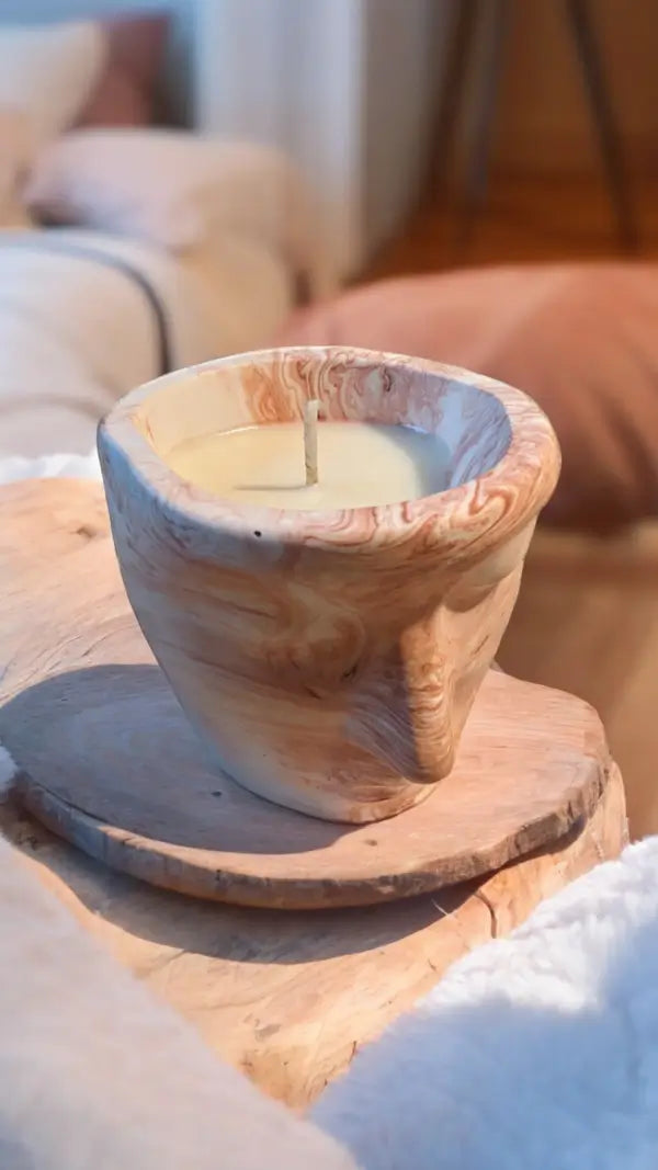 Chaque bougie Ma-Petite-Bougie est soigneusement coulée à la main à partir de cire végétale de soja, reconnue pour sa combustion propre et durable.